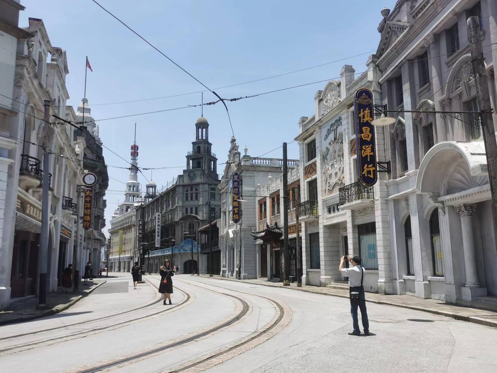 记者漫步在阔别数月的影视城,不少影视剧中的经典场景一一呈现:周星驰在《功夫》里坐过的有轨电车、《伪装者》中明家兄弟分别时的火车站、《麻雀》里承载多场惊险戏份的石库门弄堂、《我和我的父辈》里“鸭先知”为参桂养荣酒跑销路的上海街头、《摇啊摇,摇到外婆桥》里的咖啡馆,《建国大业》《建党伟业》《建军大业》“三部曲”中也都有这里的影子。作为中国十大影视基地之一,上海影视乐园可谓一步一景。