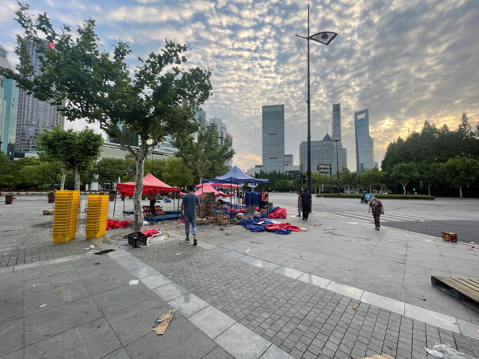 (5月31日团队撤离陆家嘴,撤离前后,街道晚上恢复了人来人往)