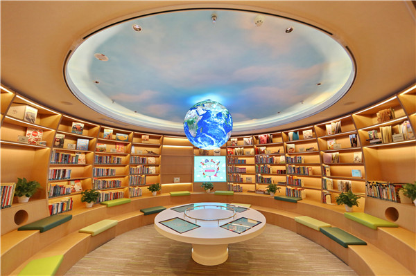 三层“创知空间”除儿童借阅区外,馆内还提供国际童书馆、典藏馆、乐享天地、名家书屋等多元文化交流空间。四层“睿知智库”还设有机器人实验室,意在满足青少年的求知欲,在少儿馆内构建“体验”“探索”“活动”的多元智慧空间,实现“进入即学习”“学习即探索”。