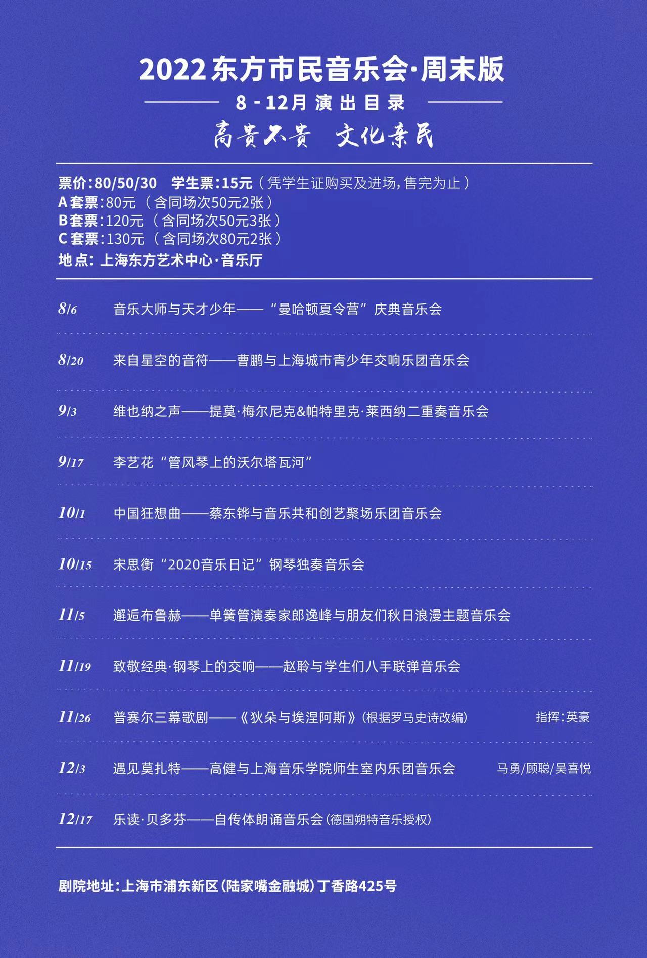 16年来,作为公益性、普及型品牌演出,东方市民音乐会·周末版全场30、50、80元,学生票仅售15元的亲民票价延续至今,不仅没有压缩整体水准,更吸引到不少大牌名家主动加入。