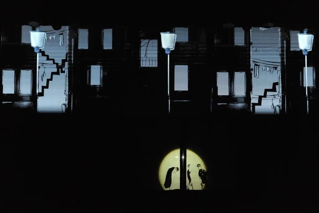 此外,木偶音乐剧《报童之声》中的两段光影戏可以说是“大制作”了,不仅用到了动画效果,表演所用的皮影也与传统皮影有不一样的制作、操作方式。有的皮影人物走路像手风琴的拉风箱,还有的皮影人物可以表演杂技。光影戏与剧情的穿插配合,让剧中的人物层次升级,也让剧情更跌宕起伏。