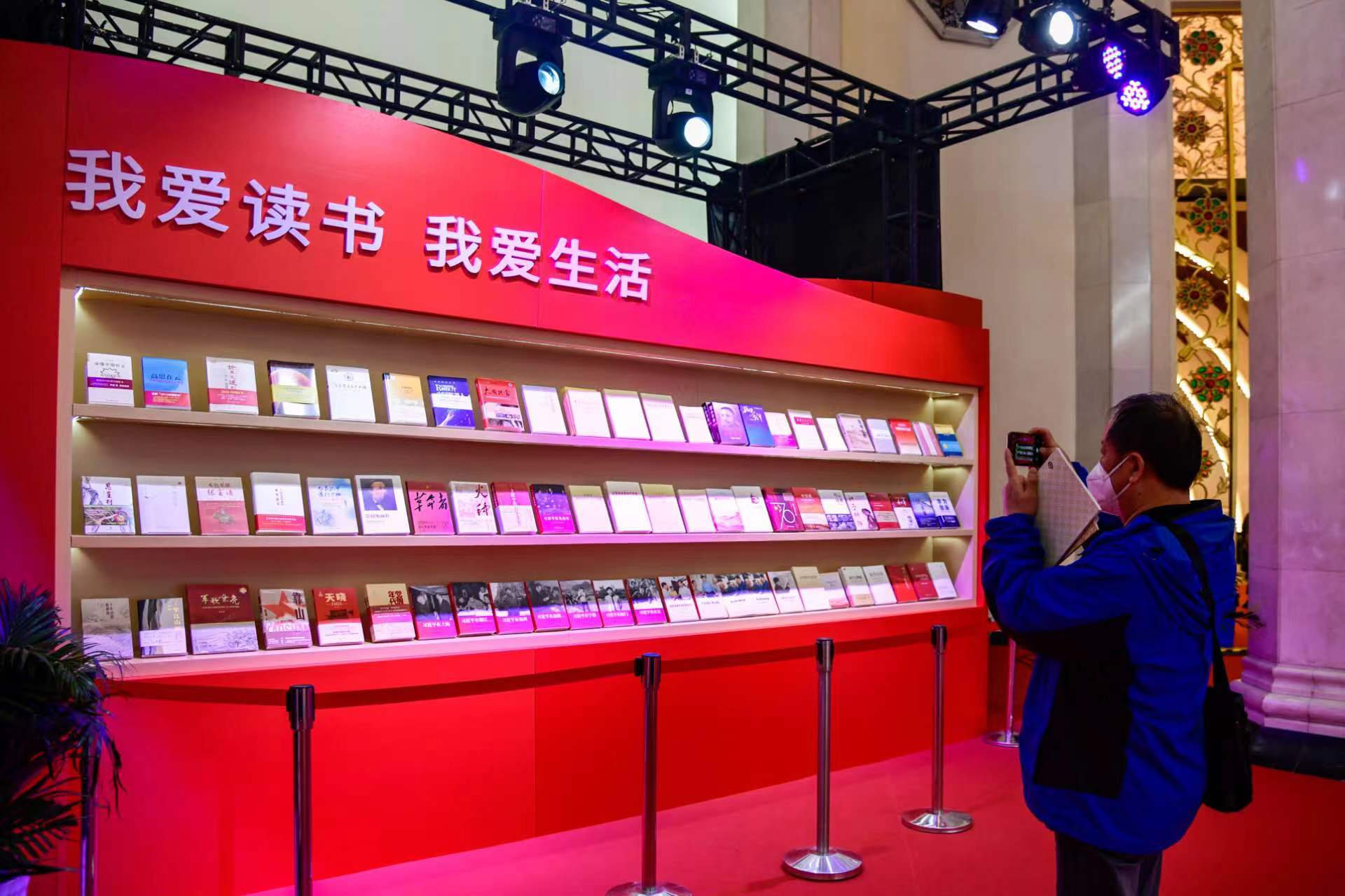 走进序厅,迎面看到的是形如“火炬”的中心雕塑及4组主题书架,书架展陈了《习近平谈治国理政》(1-4卷)、习近平总书记系列著作及论述、党的二十大文件系列及重点图书、主题出版成果和国家级获奖图书,集中呈现“阅读新时代”的出版发行成果。