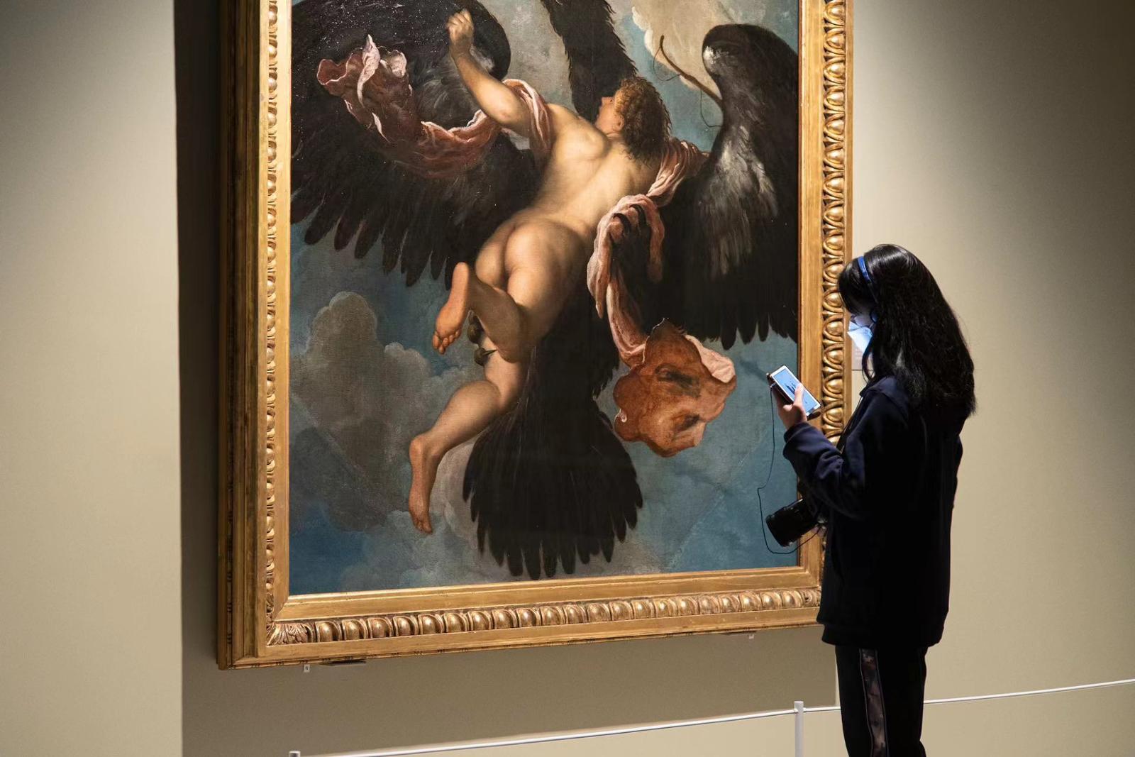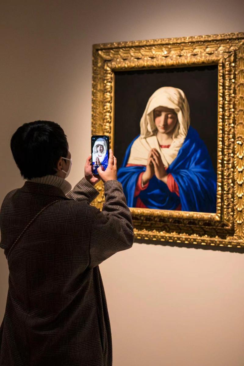 记者在现场看到,尽管当晚气温不高,但市民观众的参展热情不减,18点不到,已经有观众在门口排起长队等候入场。进馆后,不少人直奔一楼的“从波提切利到梵高:英国国家美术馆珍藏展”。在这里展出的波提切利、拉斐尔、伦勃朗、莫奈、梵高等50位欧洲艺术巨匠的52件油画作品,堪称一部浓缩的欧洲美术简史。