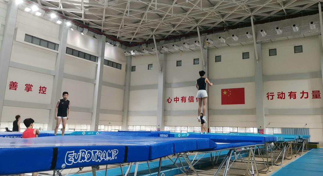 (蹦床运动员在训练)