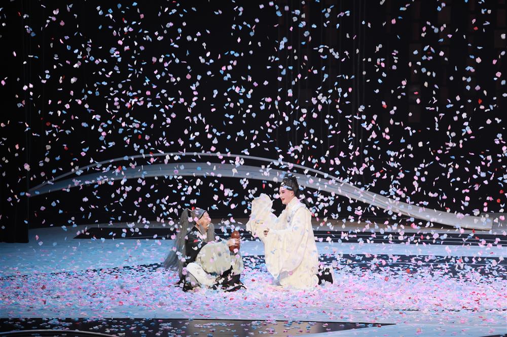 张军表示,“张若虚50年的执念,也是我对这出戏8年的执念。大家会在这部戏里获得古今中外情感和时间的穿越,找到自己与宇宙世界间的触动。”不论是几百年前的大诗人,还是几百年后的台上人,他们都通过创作寻找着同时代乃至跨时代的知音。《春江花月夜》坚持使用了古汉语、曲牌体,也坚持了表达超越情感超越生命的哲思,守住了昆曲的本质。