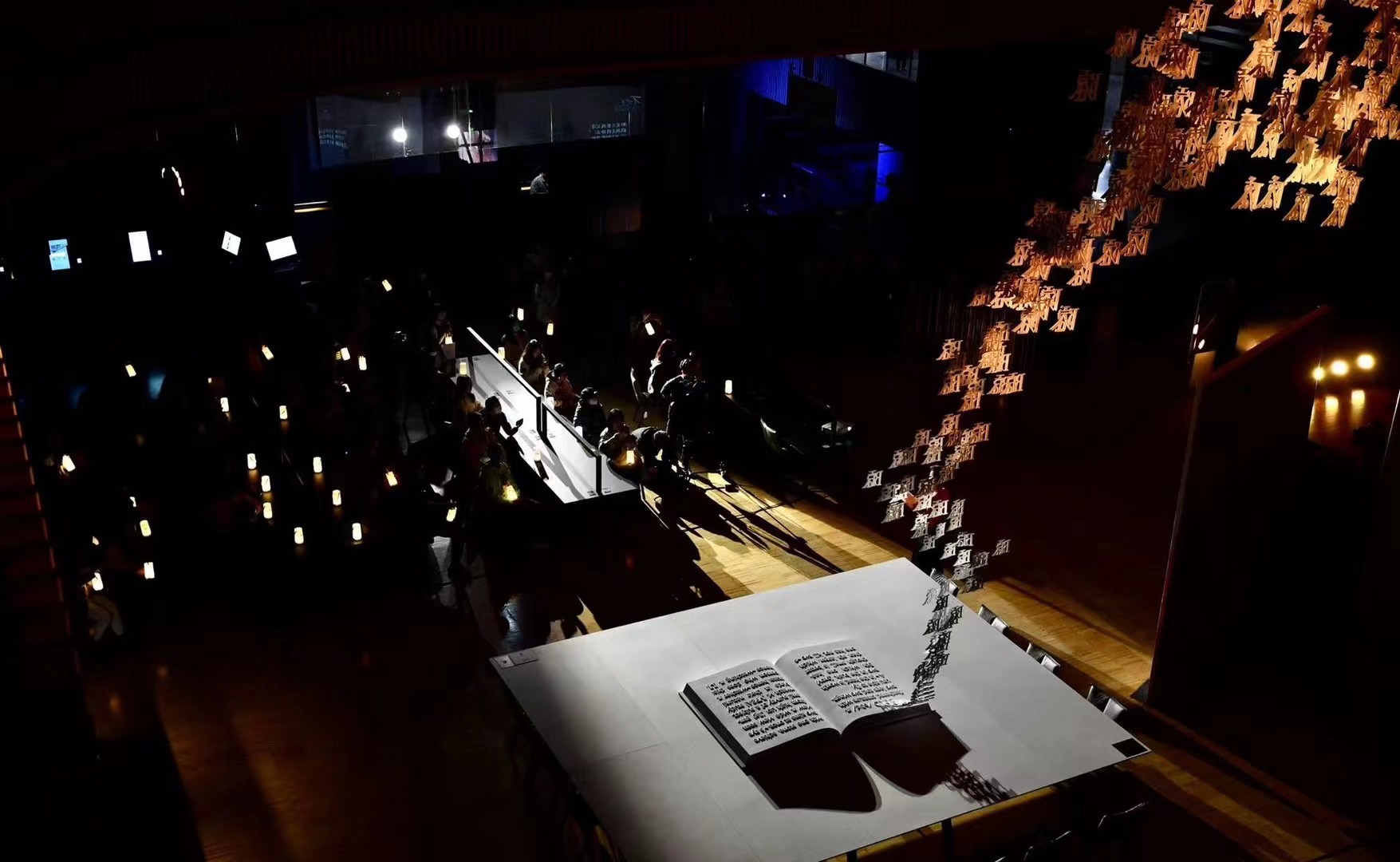 旅程伊始,现场读者化身“寻梦者”,仿佛置身于亦真亦幻的图书馆梦境之中。SMG主持人衣漪、克里斯、江予菲作为“领航人”带领读者探索上图东馆的各个楼层。三楼主题场景是“今天我们为什么还要阅读?”、四楼主题场景是“阅读浓缩我们的生活”,五楼主题场景是“‘爱’阅读”……在不同楼层的阅读空间里,书架回转之间,东馆场域定制艺术品的流连之处,那些被传颂的经典作品,再次以诵读的形式被读者打开。