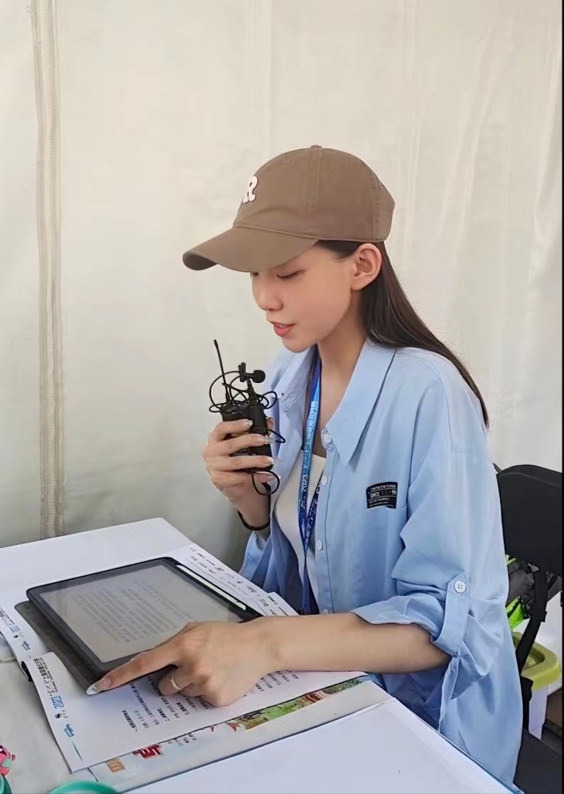 邵凌霄进行播报前的准备工作。受访者供图