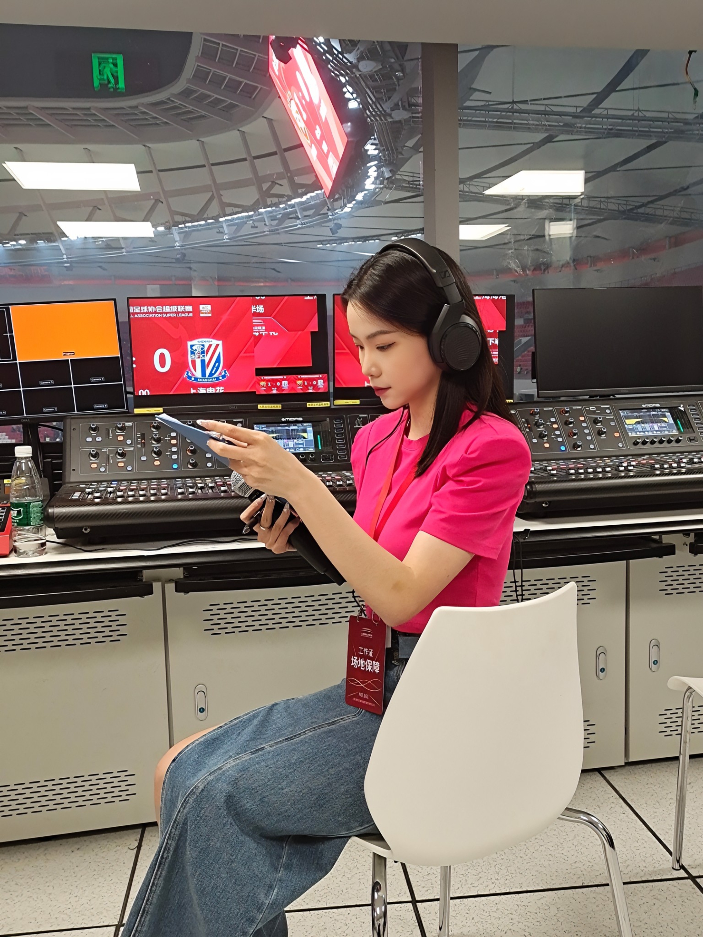 头图为浦东足球场现场播报员邵凌霄。受访者供图