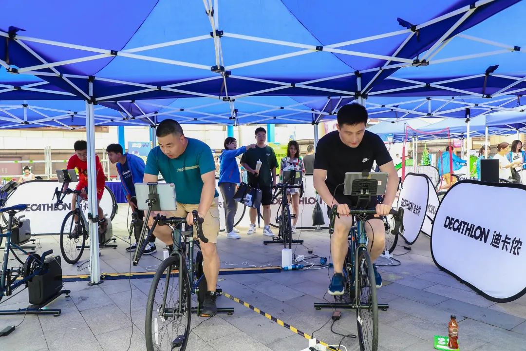 本次环球港双塔登高赛不仅有激烈的赛事比拼,在环球港外广场的场面也十分火爆,超千名市民参与了迪卡侬杯骑行环保嘉年华,以趣味体验、公益环保的方式一起感受运动带来的快乐。现场,二手自行车交易市场和衣物回收活动也吸引了大量的参与者,既促进了资源的循环利用,每位参与者完赛后也可得到送上了心意满满的环保徽章。