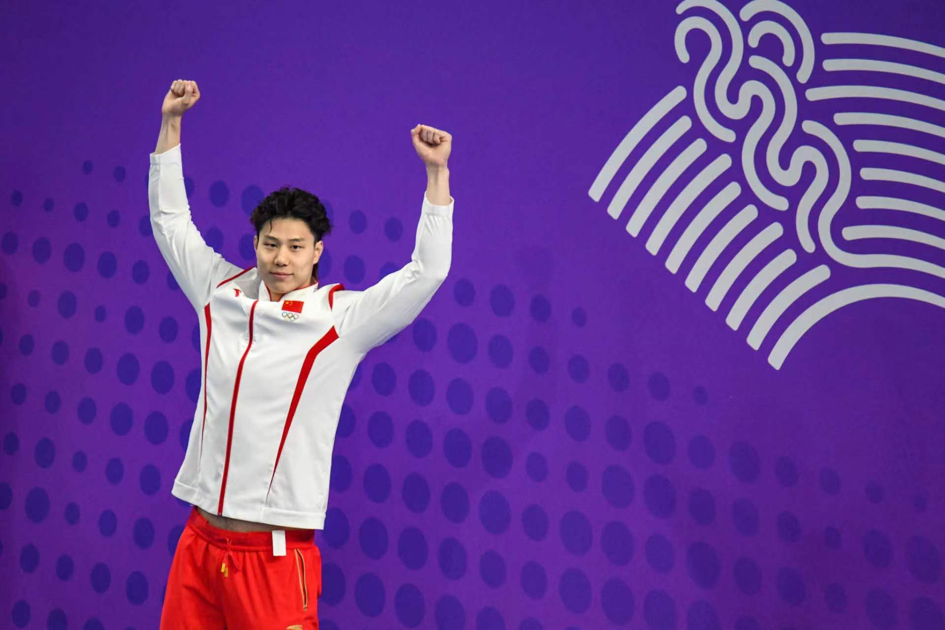 在副项小试身手之后,覃海洋在自己的主项蛙泳“王者归来”。在9月25日晚进行的杭州亚运会男子100米蛙泳决赛中,中国“蛙王”、上海选手覃海洋以57秒76的成绩夺冠,继预赛之后再次刷新亚运会赛会纪录,也是他在亚运会上的首枚个人项目金牌。