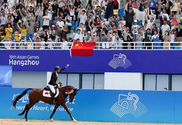 华天与胯下宝驹“海王”更是人马合一,拿下马术三项赛个人赛冠军。这也是自1982年新德里亚运会将马术项目正式作为比赛项目以来,40多年来,中国骑手首次圆梦亚运赛场,而且一拿就是两块金牌。