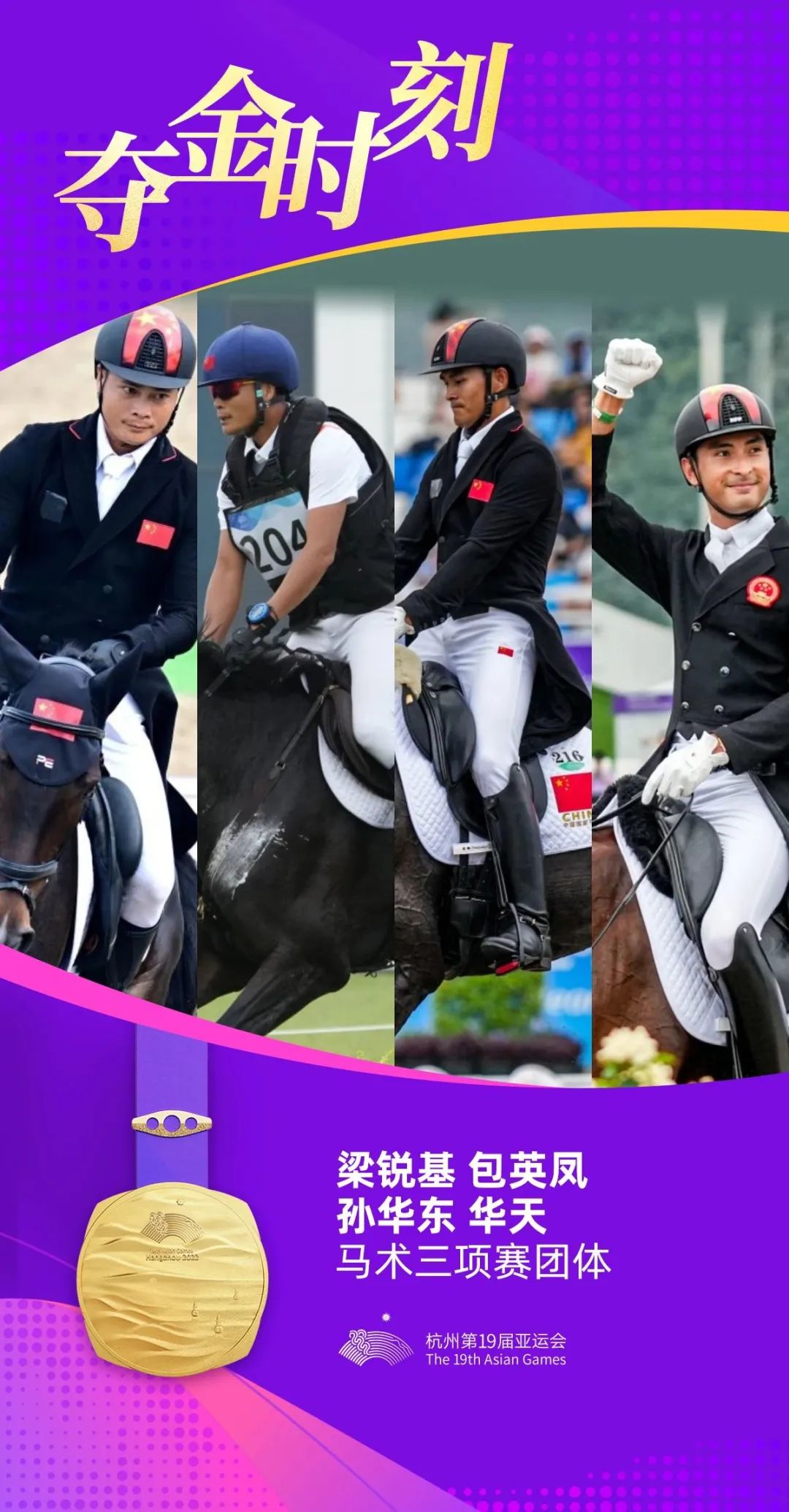 中国队夺金海报。亚运会官方图