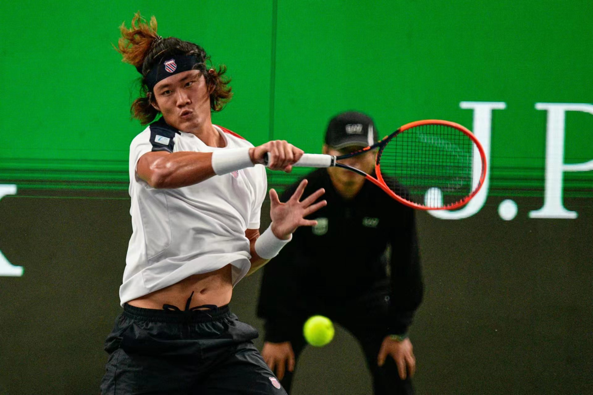 张之臻在比赛中回球。劳动报记者颜筱依 摄影