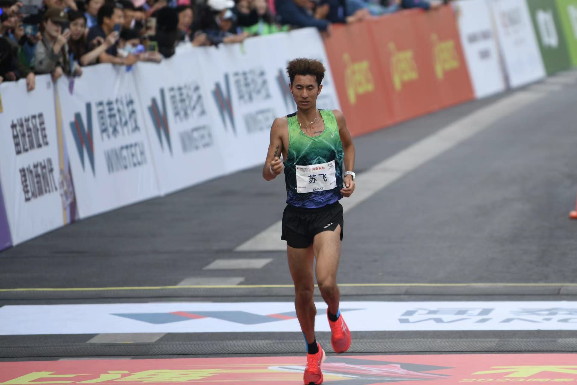 首位冲过终点线的中国选手苏飞。劳动报记者贡俊祺 摄影