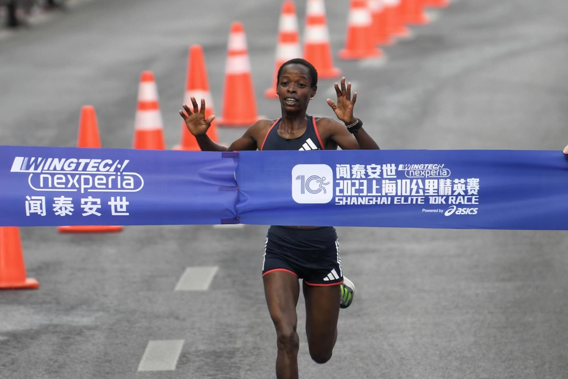 最终,上海跨国采购会展中心见证了2023上海10公里精英赛的荣耀时刻。来自肯尼亚的约翰·布鲁·姆鲁里以28分18秒的成绩第一个冲过终点,获得男子组冠军。女子组冠军是同样来自肯尼亚的杰西卡·彻朗佳特,她的成绩是30分44秒。