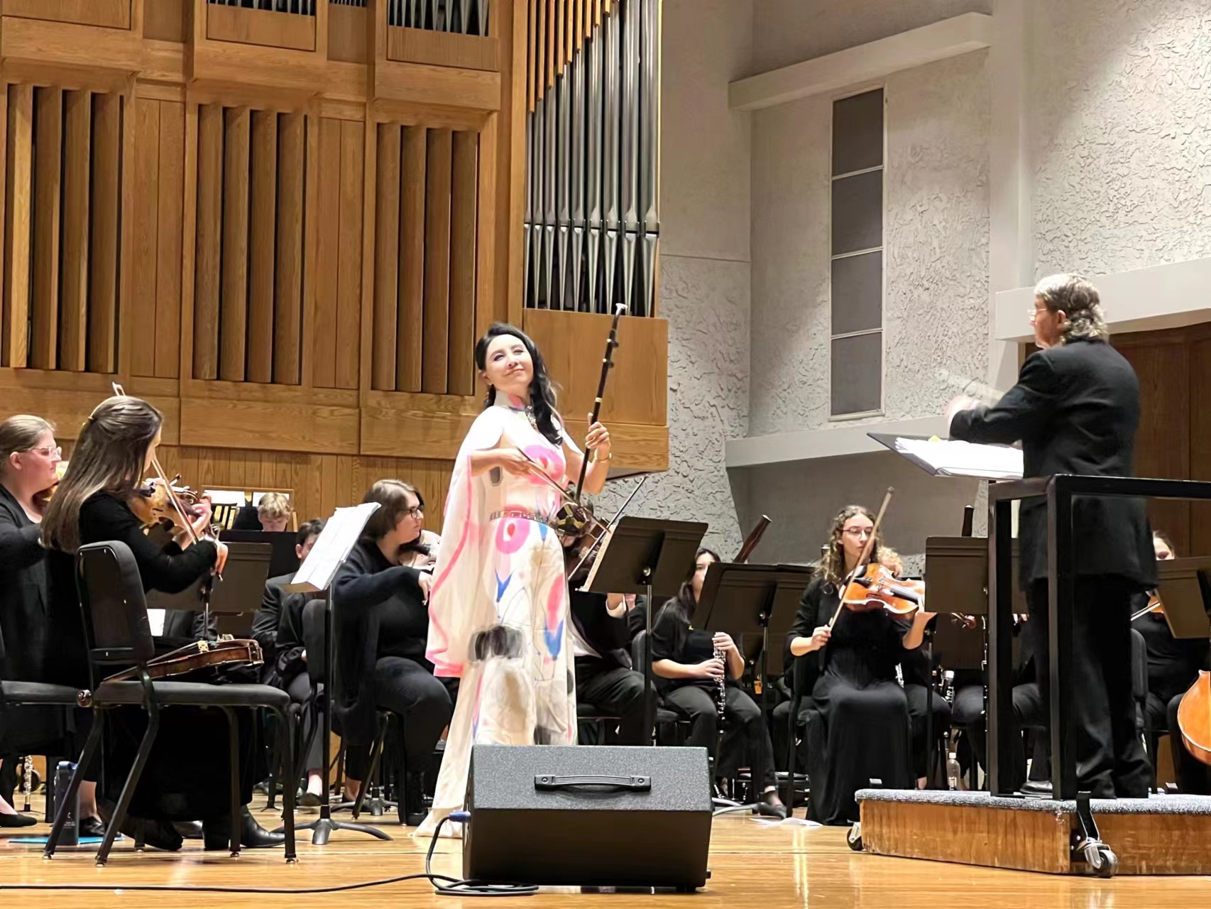 不仅如此,马晓辉还应邀和中田纳西州立大学音乐学院交响乐团合作奏响了二胡协奏曲《天山牧羊女》,惹得不少金发碧眼的学生对二胡这件东方乐器以及中国音乐文化产生了浓厚的兴趣。