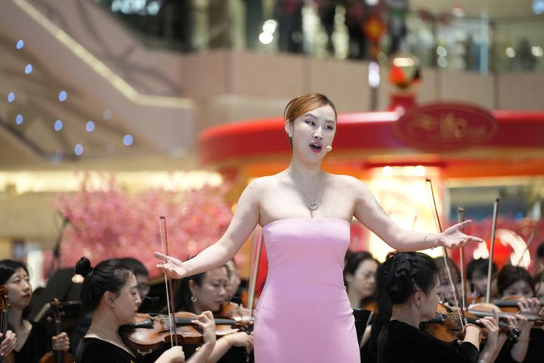 王冰冰倾情献唱经典歌剧选段《亲爱的爸爸》《我的吻多么灼热》,莫华伦倾情献唱《我的太阳》和《万里长城永不倒》,浑厚的声音和精湛的技艺征服了现场所有观众,两人合体演绎经典歌剧选段《灼热的吻》和《饮酒歌》,更是将音乐会推向高潮。交响音乐会美妙跃动的音符及极具渲染力的乐章为现场顾客呈现一场高雅艺术殿堂级的音乐视听盛宴。