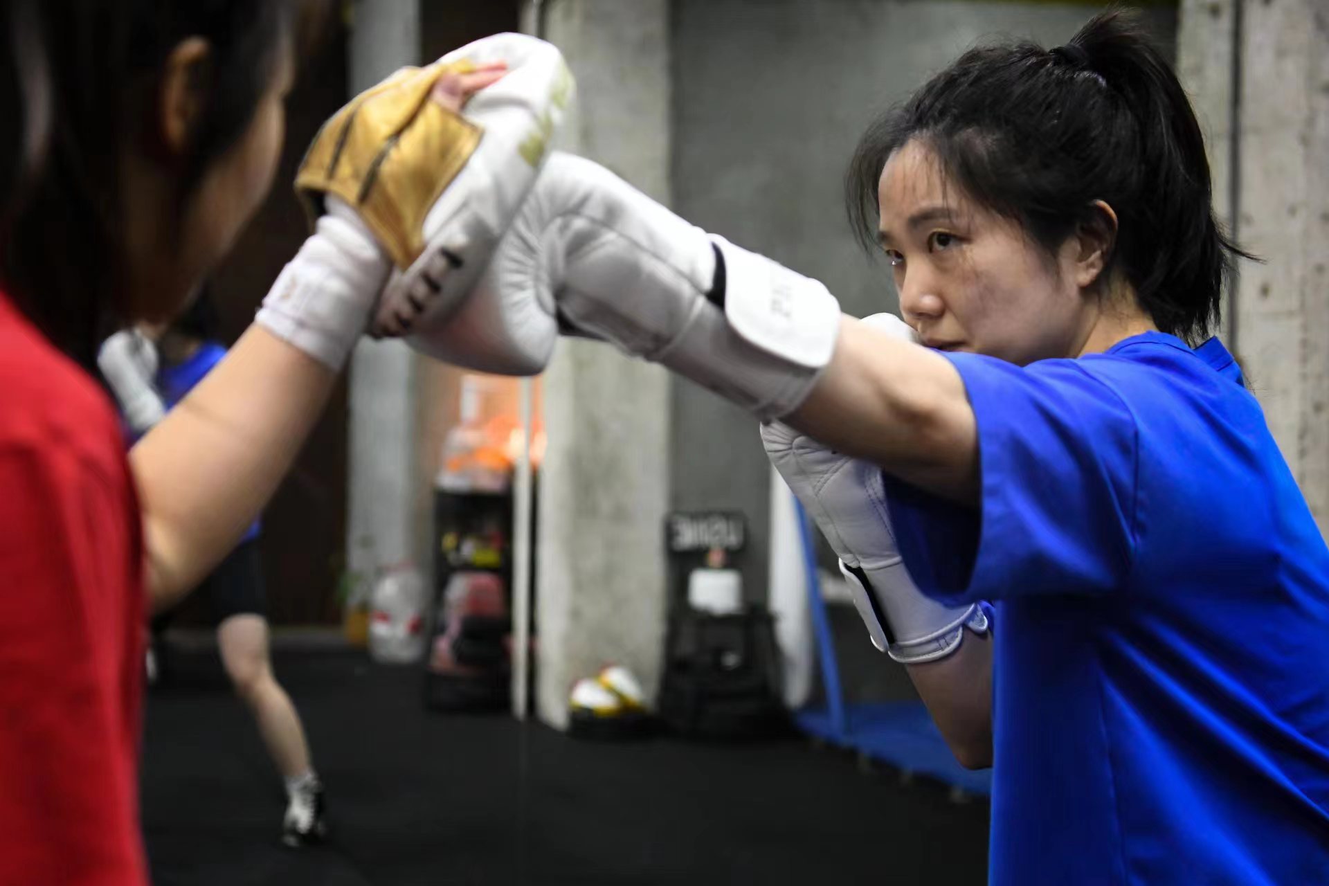 室外的雨水淅淅沥沥,外滩附近的一处老式里弄里,一家拳击馆却是热火朝天,不时响起打拳的节奏声和呐喊声,洋溢着燃烧卡路里的快感。
