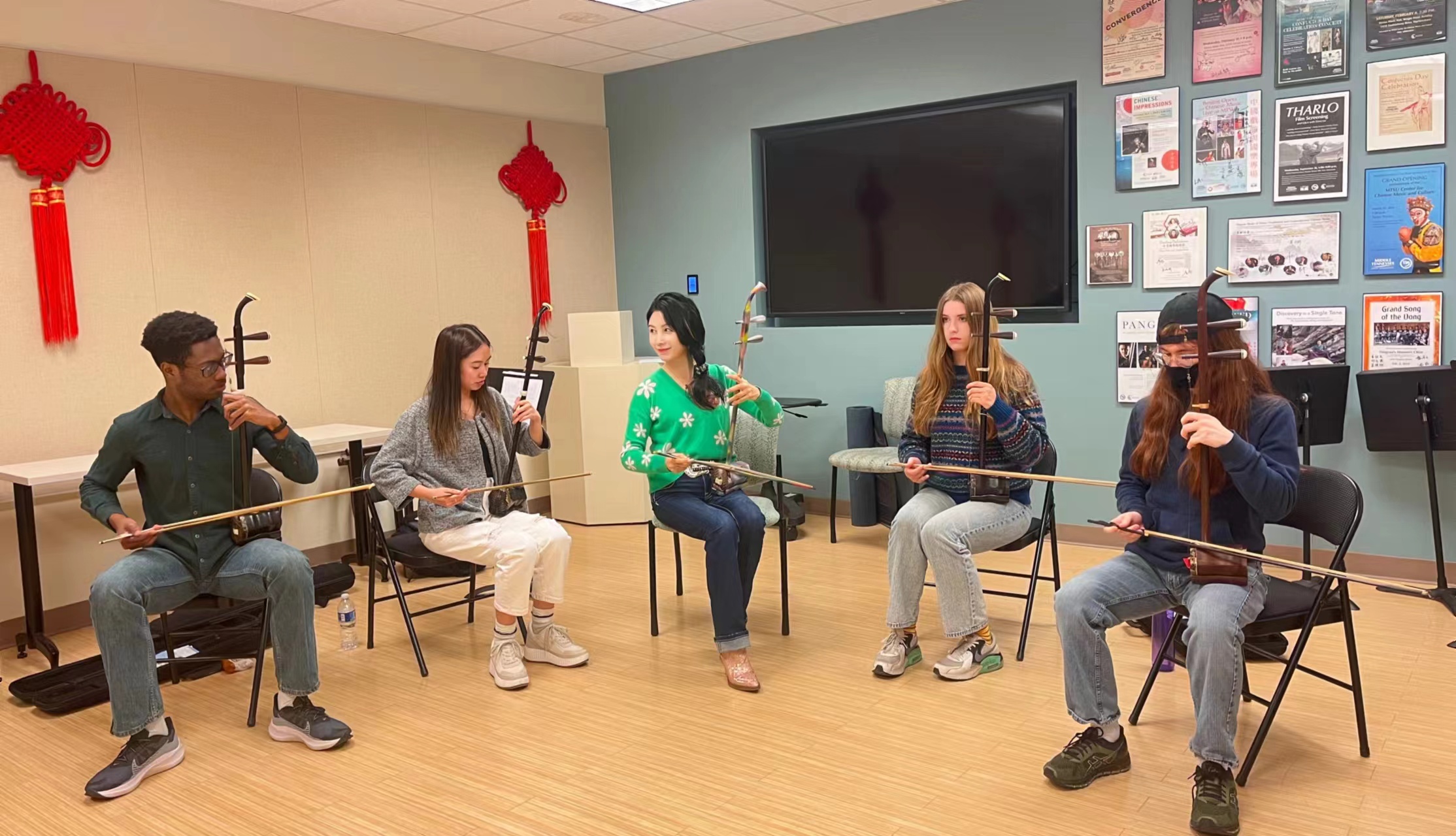 “让传统佳节和中国音乐、中国故事更好地结合,让海外华人和国际友人更多地共享中华文化,是我们中国音乐人的使命。”带着这样的目标,此次公益行的第一站,马晓辉来到了位于美国田纳西州贝尔蒙特大学音乐学院的“龙年春晚”。一群外国年轻人组成的“中国功夫”组合精彩亮相,与马晓辉的二胡展开对话,引发了当地观众极大的兴趣。