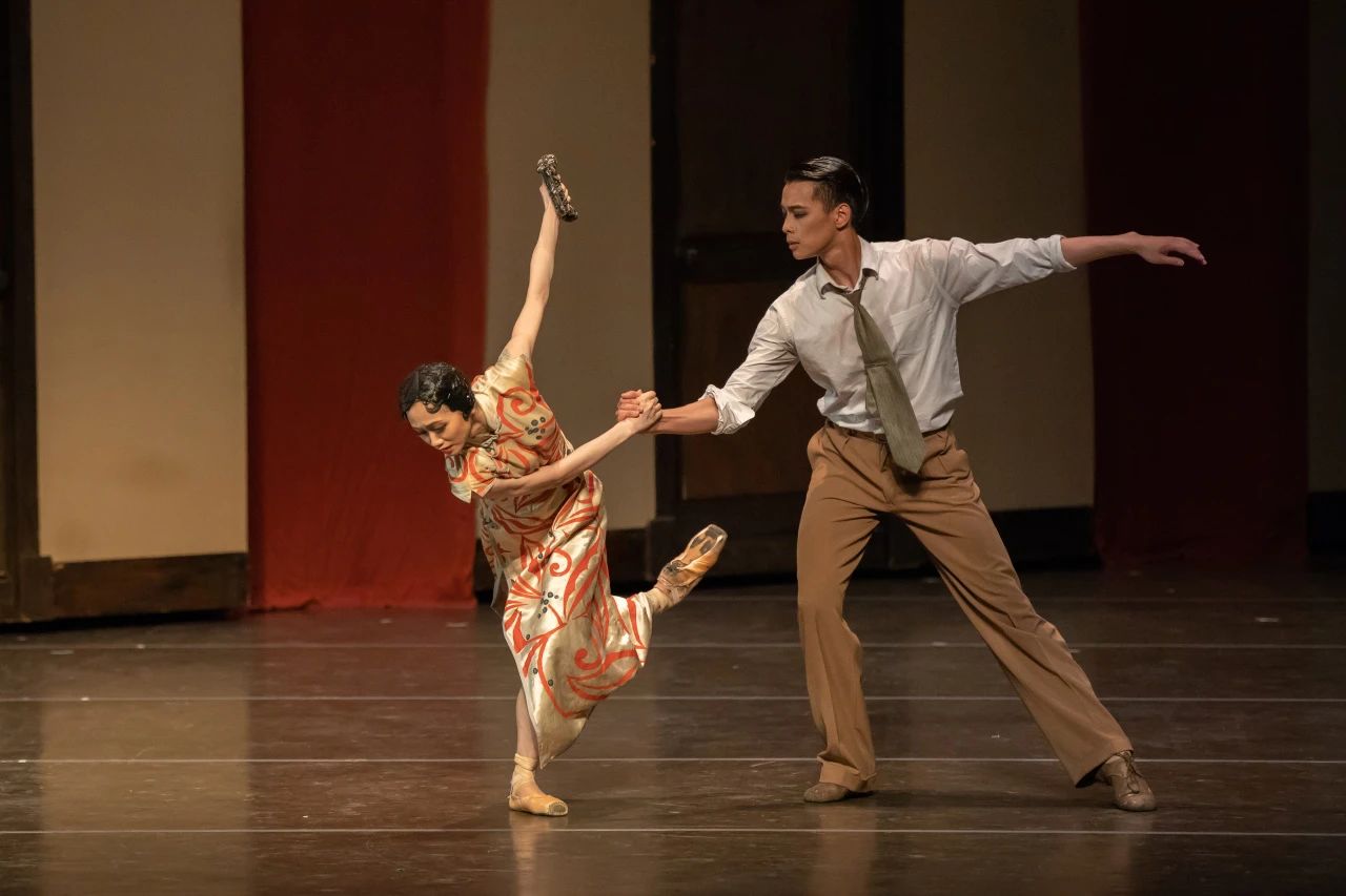 德阿特的编舞更是独具匠心,在推动情节发展的同时,融合了芭蕾足尖的万种风情。加上服装舞美设计师热罗姆·卡普兰改良的中国传统旗袍,通过线条、色彩、剪裁的修饰,使其与来自西方的芭蕾语汇相得益彰。而舞剧中石库门、百乐门、黄包车、馄饨摊等标识性事物,同样营造了浓郁的上海市井风情,倾盆而下的大雨和地道的沪语对白,都让观众瞬间进入作品所设定的情境。