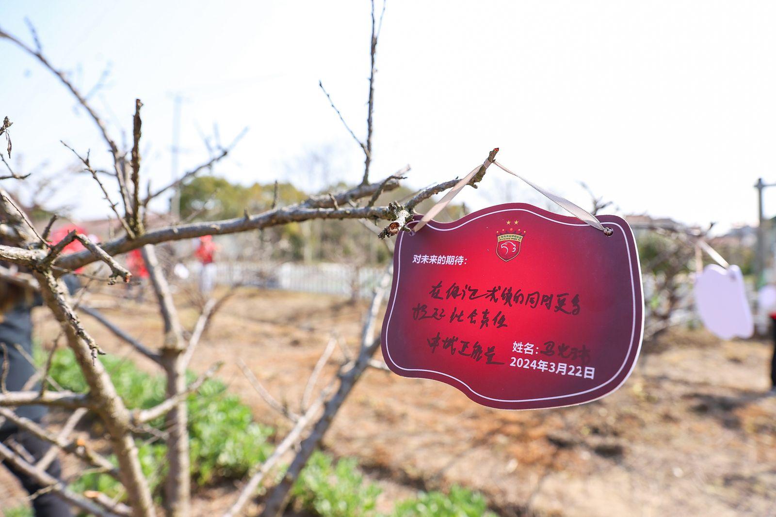 在专业人员的指导下,大家齐心协力,一丝不苟地完成除草、浇水等步骤,球迷们还将自己对于海港未来的期望,对球员的鼓励等心愿书写下来,挂在树上。树梢上随风飘动的心愿牌,为生机盎然的种植园更添风采。