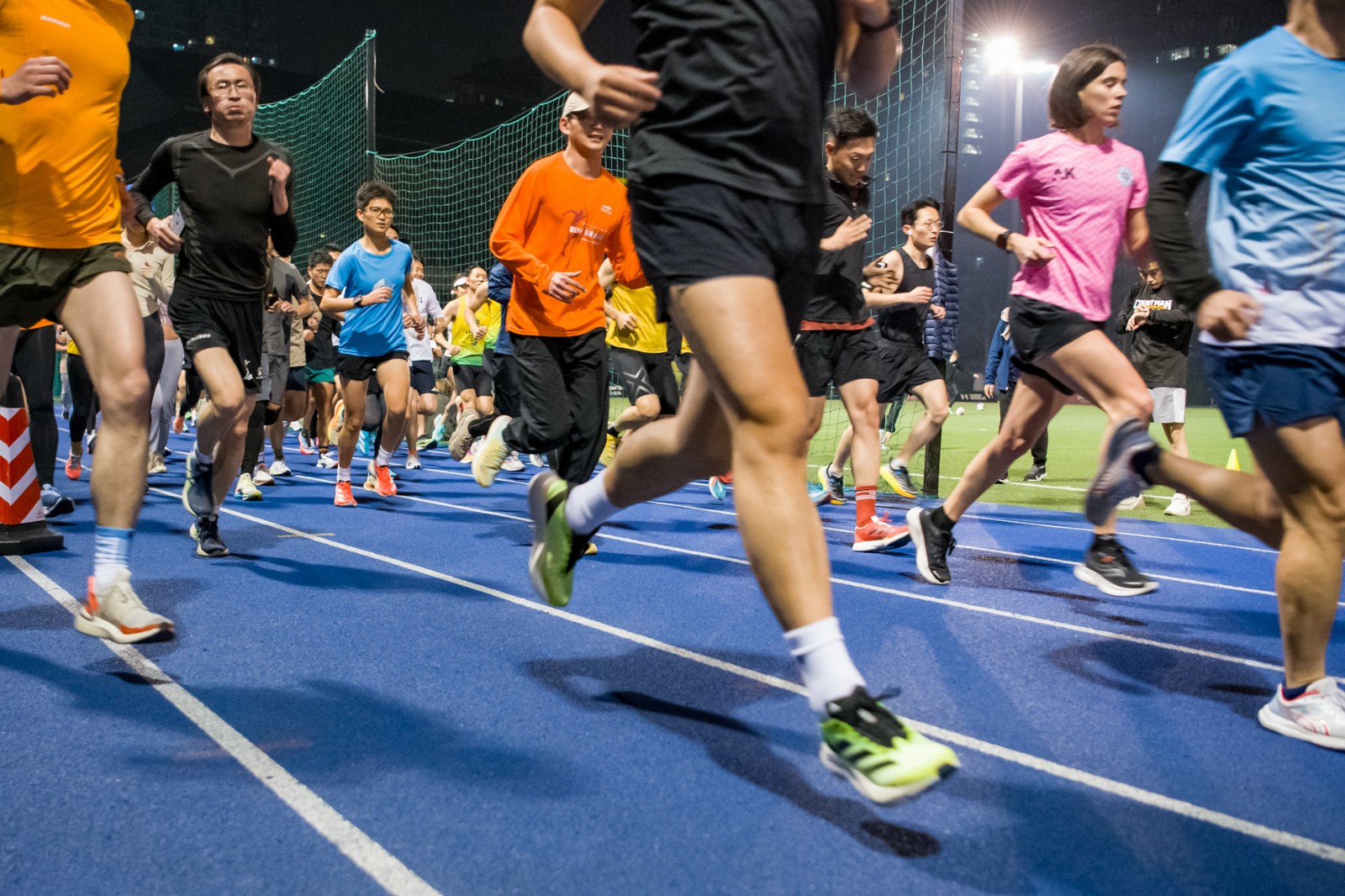 头图为路跑爱好者在号称“最佳训练场”之一的卢湾体育场进行夜晚跑步训练。劳动报记者颜筱依 摄影