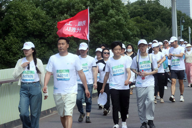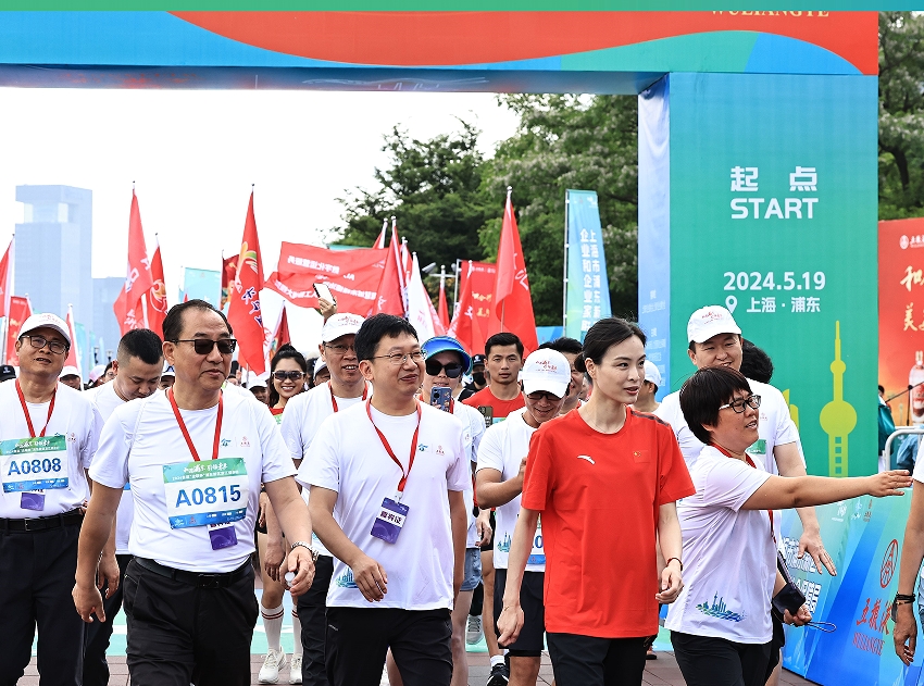 头图为奥运冠军吴敏霞和参赛选手一起出发健步行。主办方供图