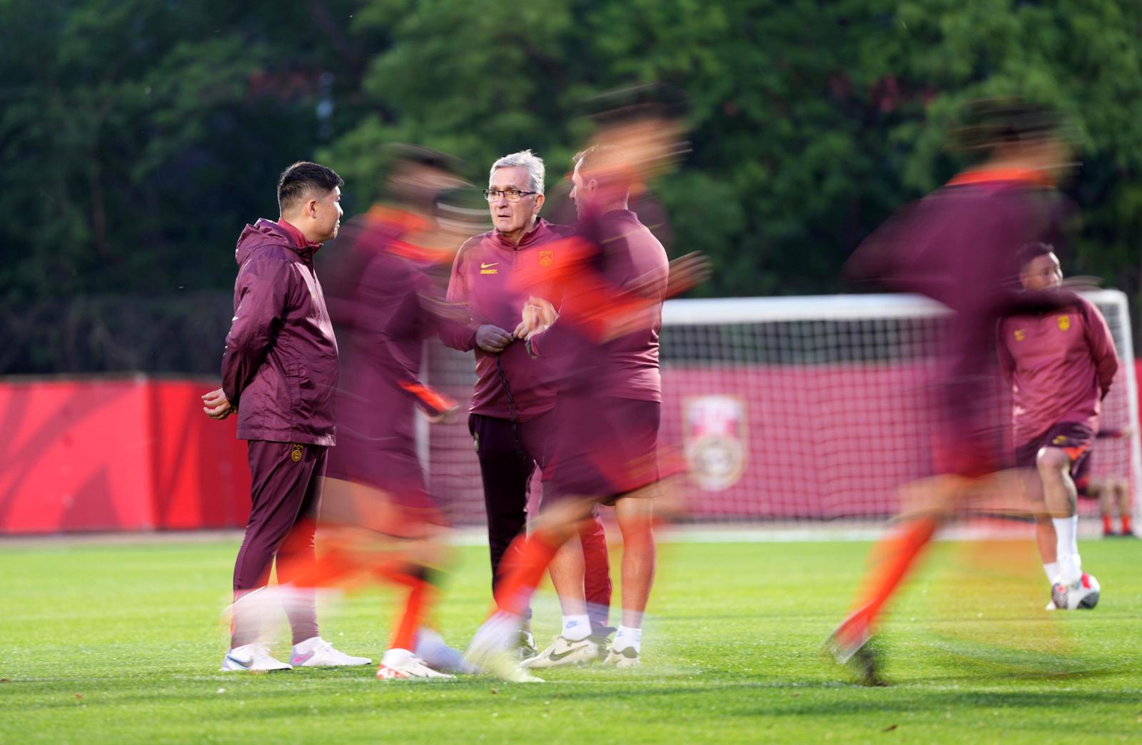头图为国足在沈阳训练。新华社