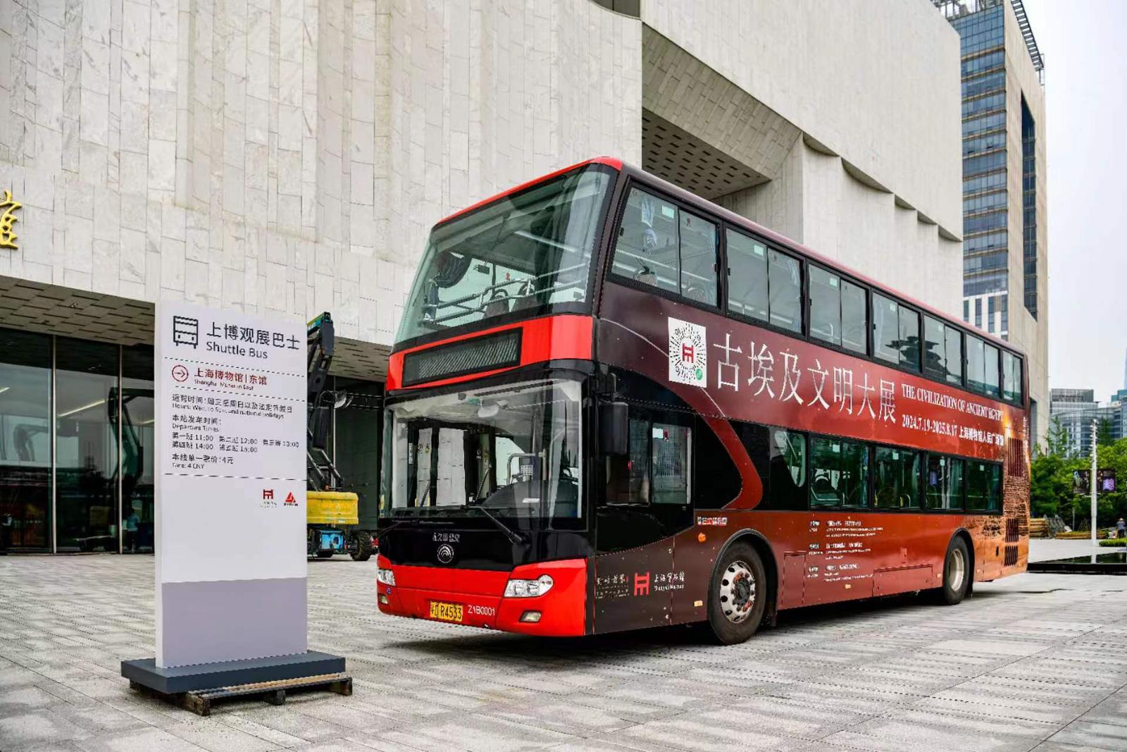 人民广场馆和东馆之间的定制公交班线。劳动报记者颜筱依 摄