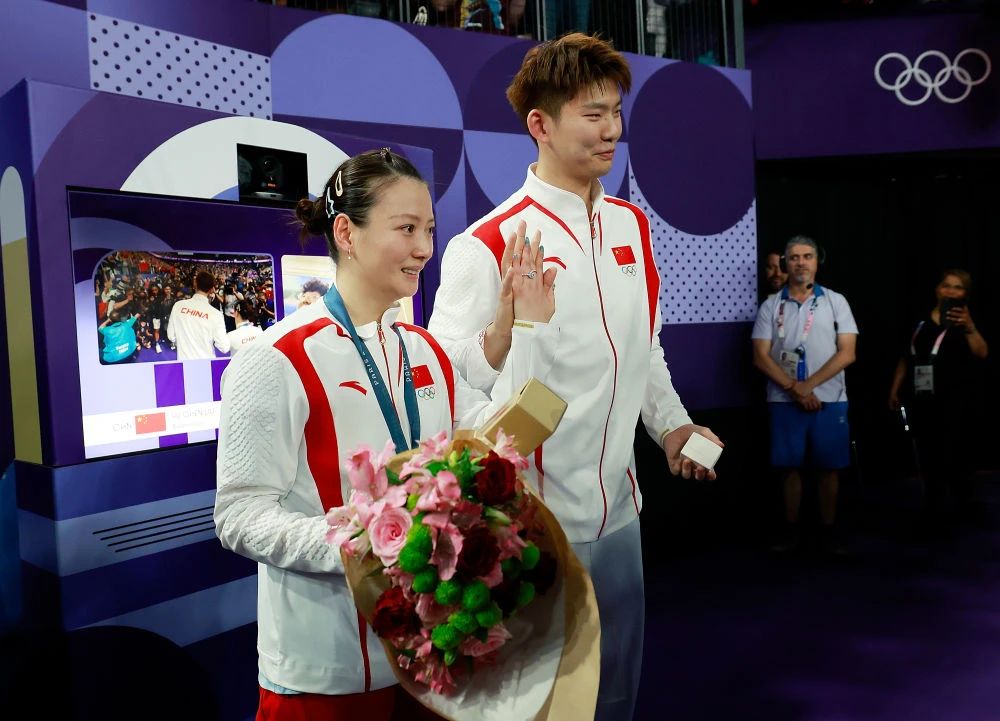 在浪漫之都巴黎,一向诞生羽球情侣的中国羽毛球队也把甜蜜的爱意洒向赛场。在北京时间8月2日深夜结束的一场巴黎奥运会羽毛球混双决赛中,中国队组合郑思维/黄雅琼以2比0战胜韩国队组合金元昊/郑娜银,夺得金牌。比赛结束之后,黄雅琼被队友刘雨辰现场求婚。