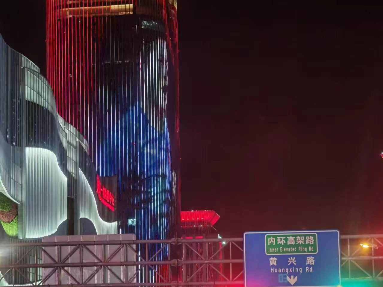 五角场为樊振东亮灯。劳动报记者王卫朋 摄
