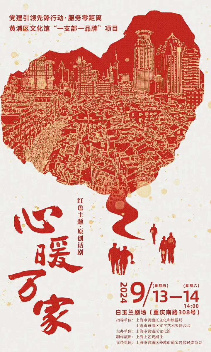 9月13日至14日,由黄浦区文化馆与上艺戏剧社共同打造的红色主题原创话剧《心暖万家》在白玉兰剧场连演两场,将“申城第一居委”宝兴居委的故事搬上了舞台。
