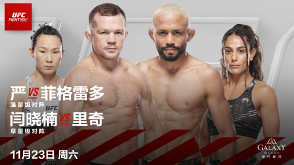 在8月于美国拉斯维加斯举行的UFC格斗之夜上,中国格斗名将王聪在其UFC首秀中仅62秒便KO对手,赛后得到UFC总裁白大拿补发的“花红”奖金。此次澳门站,王聪将在蝇量级对决中出战职业战绩9胜3负的加布里埃拉·费尔南德兹。从今年5月从精英之路突围而出正式签约UFC,到短短三个月后在正赛首秀惊艳全球,32岁的王聪无疑将是本次澳门站最受关注的明星选手之一。