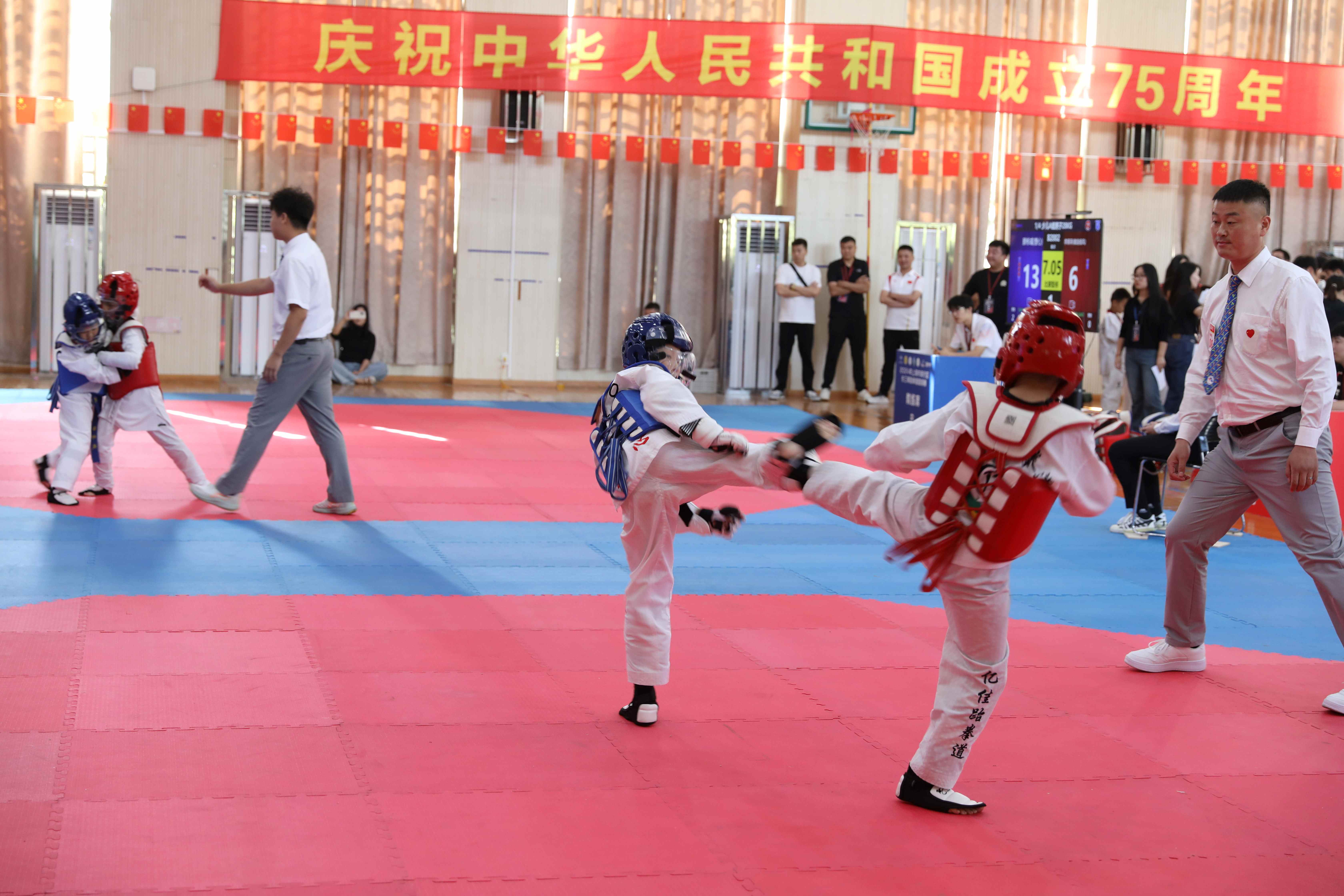 10月1日至3日,来自上海、江苏、浙江和安徽的20支代表队、近300名青少儿跆拳道选手齐聚闵行区黄浦一中心世博小学体育馆,以第四届长三角跆拳道邀请赛为载体,切磋技艺,挥洒汗水,共庆新中国75周年华诞。