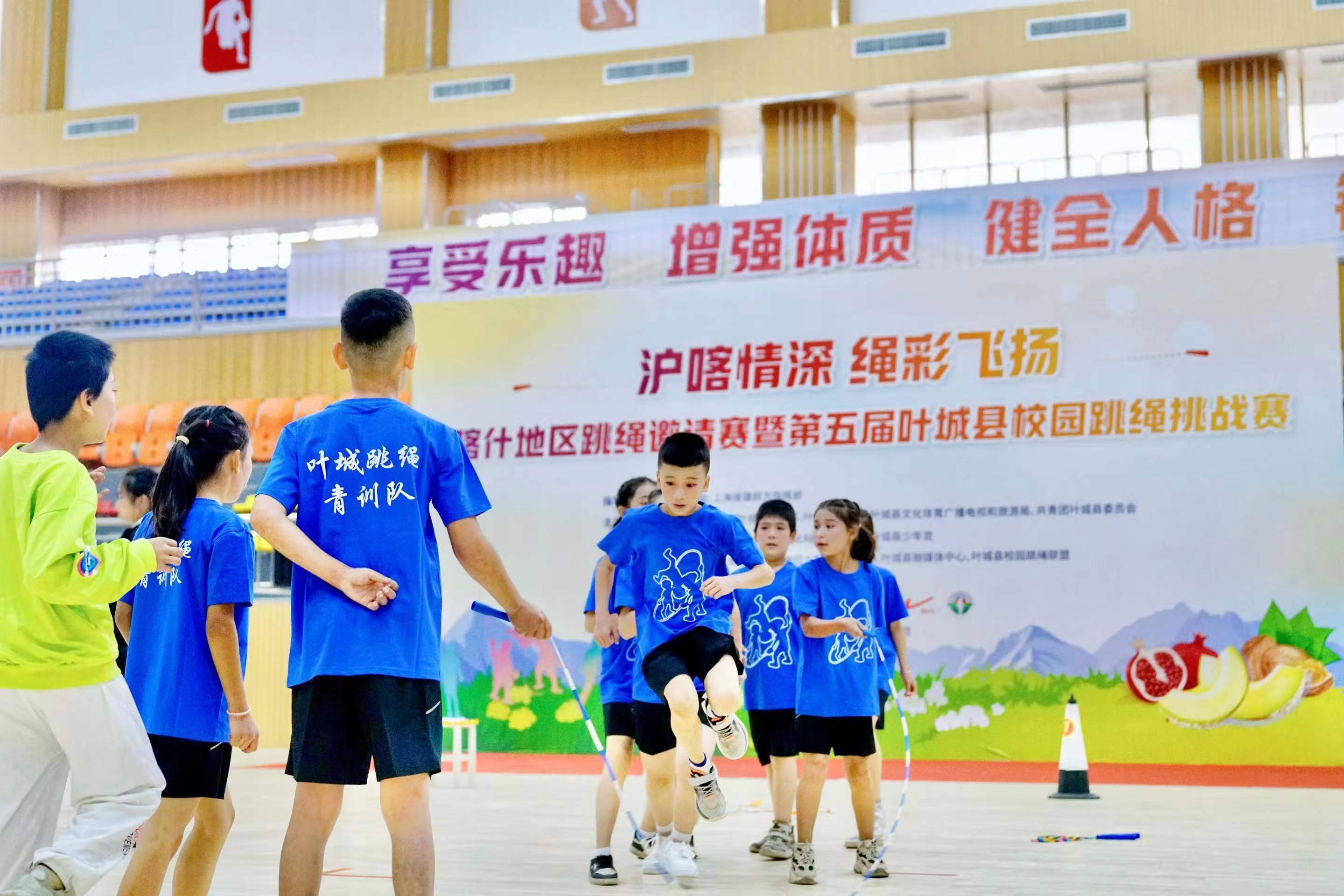 宽敞明亮的叶城体育馆内,450余名学生摆动着手中的绳子尽情跃动,青春的活力张扬四射。日前,喀什地区跳绳邀请赛暨第五届叶城县校园跳绳挑战赛落幕,上海体育人为期10天的润疆之旅也进入了尾声。送人才、办赛事,短暂的交流将一颗来自申城的体育种子播撒在新疆青少年的心中,一根小小的跳绳也连接了沪喀两地的深厚情谊。