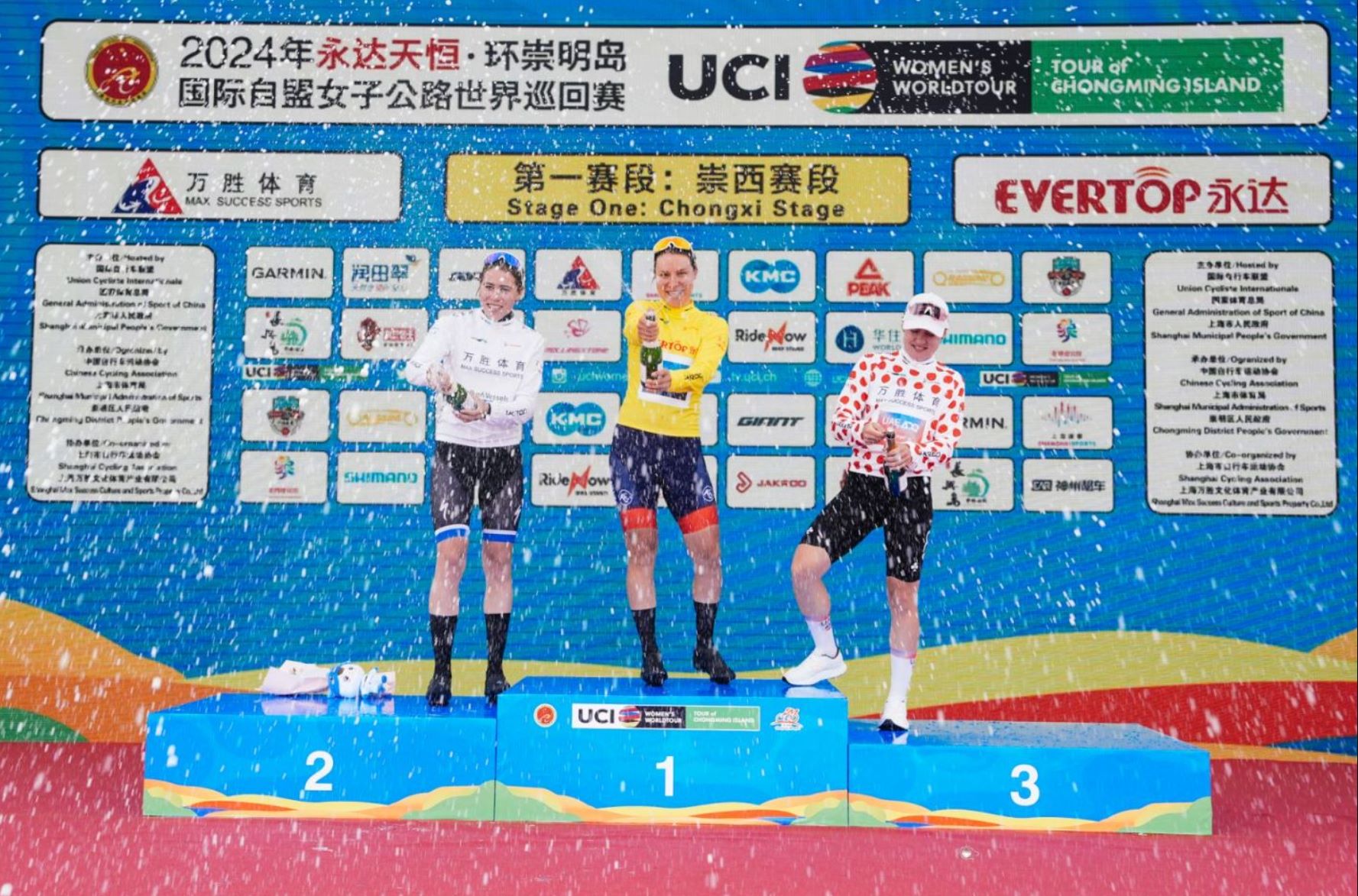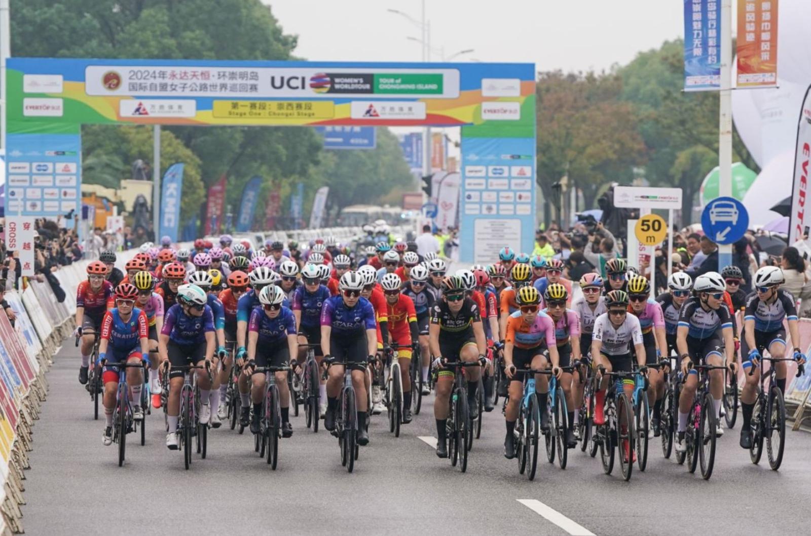 10月15日,2024年永达天恒·环崇明岛国际自盟女子公路世界巡回赛正式开启第一赛段——崇西赛段108.9公里的角逐。经过雨中2个多小时的比拼,最终大集团冲刺中森拉天时-WNT女子职业车队的米琳·德索特率先冲过终点,赢得赛段冠军的同时也穿上个人总成绩最佳的黄衫,中国车手中成绩最好的是巴迪瑞女子洲际队的齐文佳,位列赛段第六。