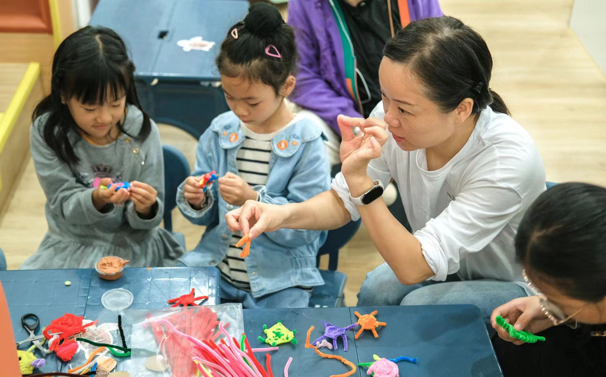 在“林小舍”社区共享空间,一场海洋生物科普展让孩子们挪不开眼睛。在专家老师的带领下,孩子们通过做手工、读画本,认识了海星、海马、海龟等海洋生物的习性,收获颇丰。