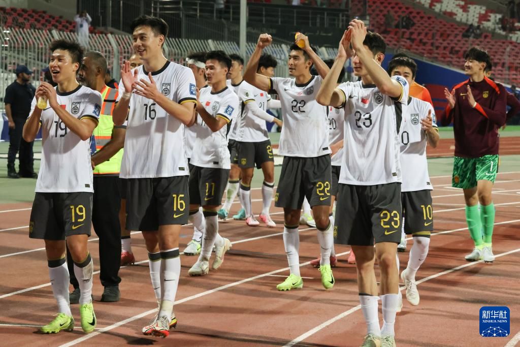 头图为国足球员在对阵巴林队之后庆祝胜利。新华社图