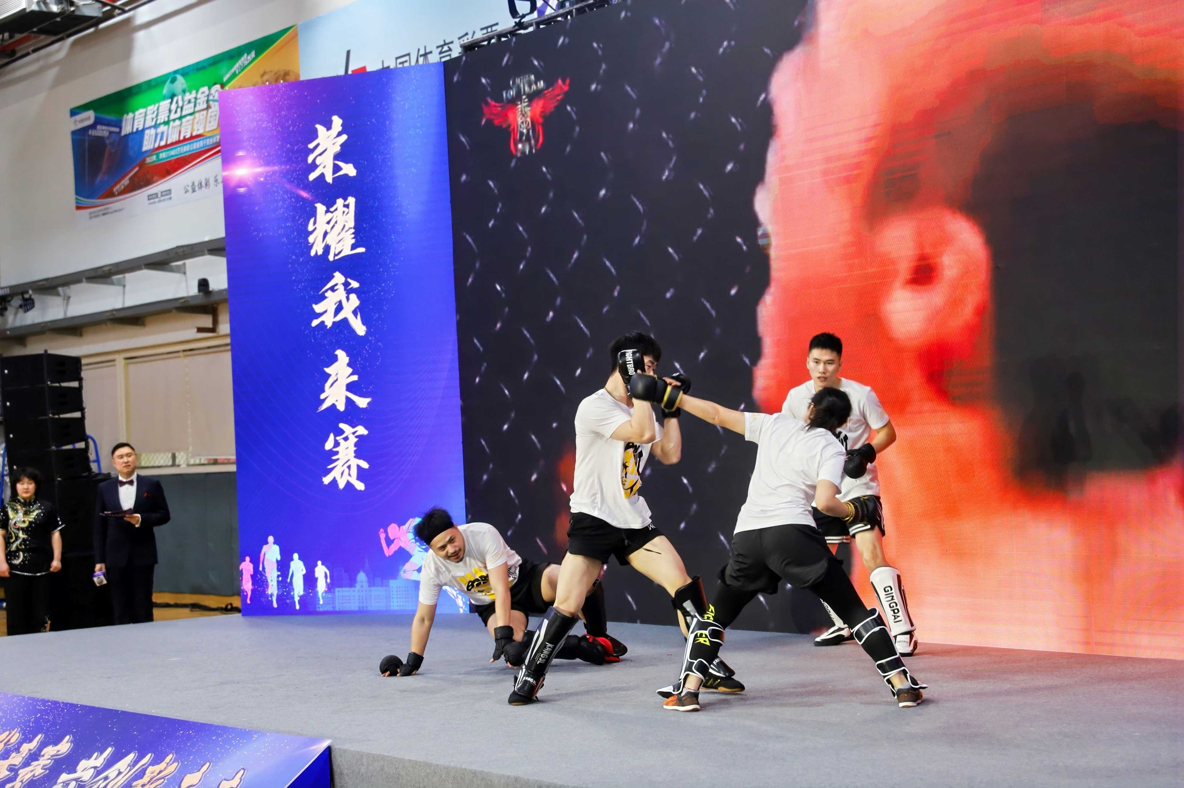 头图为现场进行搏击展示。黄浦体育图