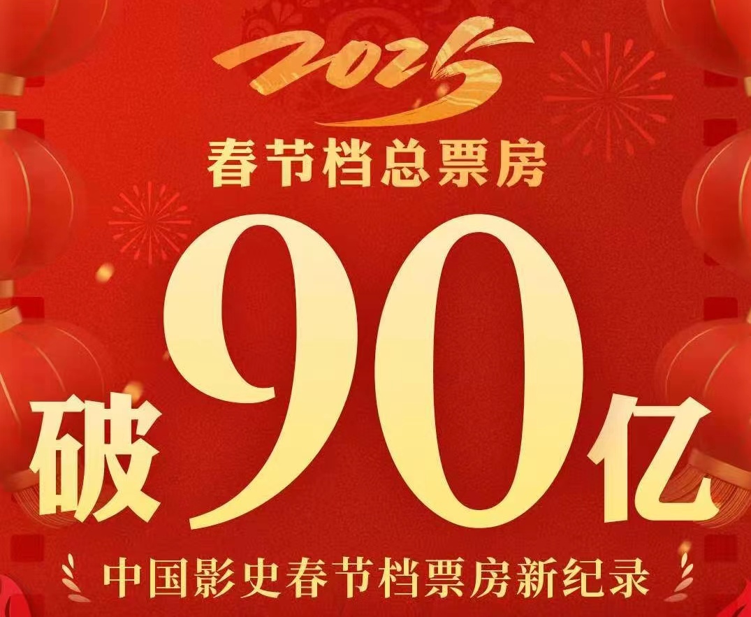 头图为2025春节档电影总票房突破90亿元。猫眼供图