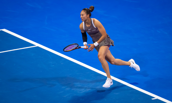 头图为郑钦文在比赛中。WTA官方图