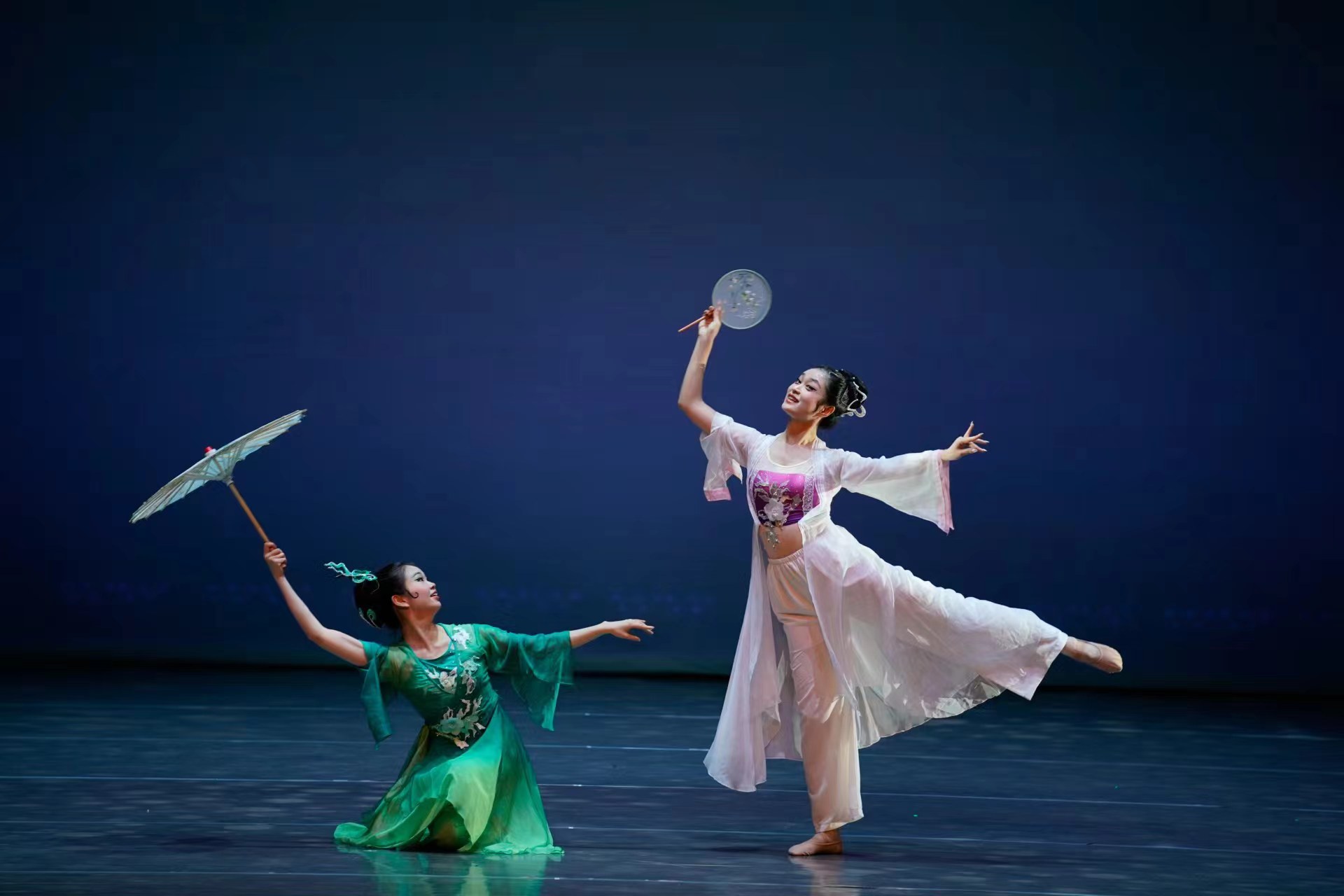 当天亮相展演的汉唐古典舞《临江仙》让不少观众眼前一亮,编导园园从宋词《临江仙•梦后楼台高锁》中汲取灵感,在“落花人独立,微雨燕双飞。当时明月在,曾照彩云归”的意境里,运用汉唐“博袖”的艺术表现形式,展现了古代女子的优雅气质,又通过拧、扭、倾、曲等不同体态的变化和灵活的抛袖、叠袖,展现出女性洒脱的人生态度。