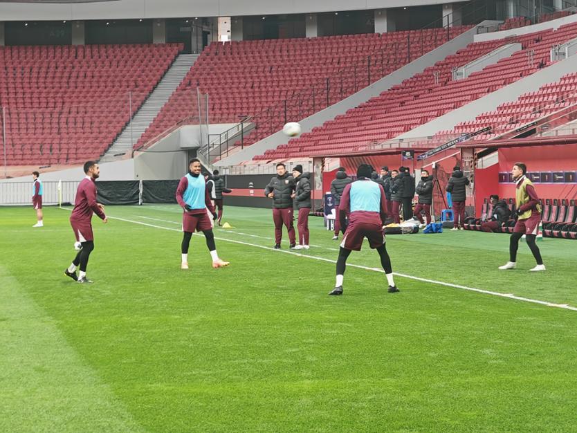 头图为海港队在浦东足球场赛前训练。劳动报记者王卫朋 摄影