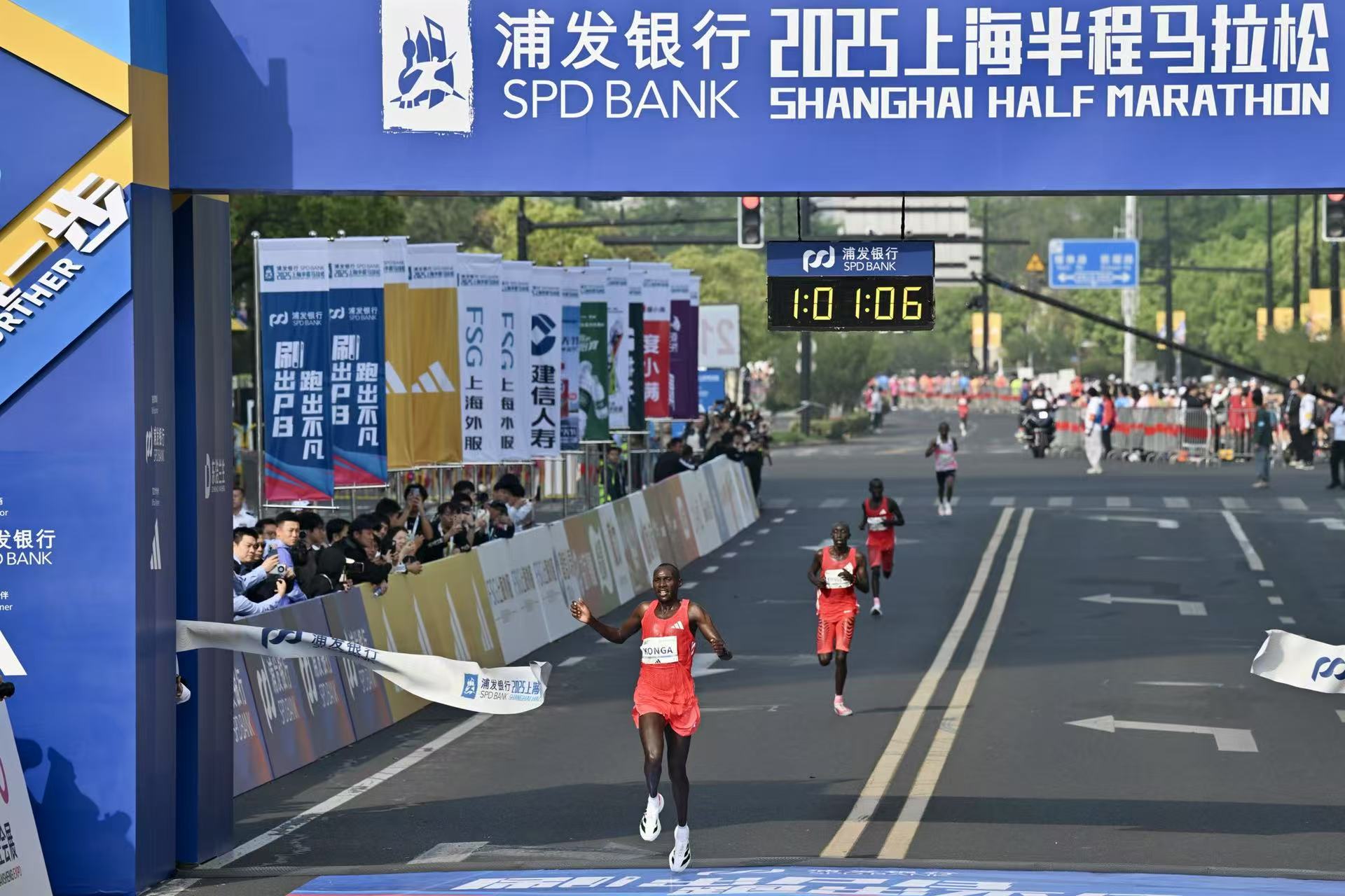 头图为2025上海半马冠军冲线瞬间。劳动报记者贡俊祺 摄影