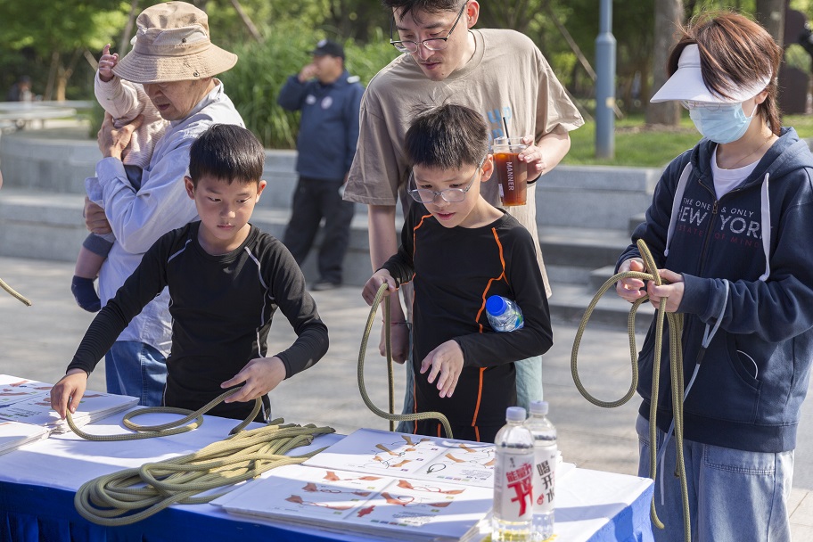 本次活动在人群聚集的徐汇滨江举办,吸引了近千名市民积极参与。近年来,上海重点打造滨江两岸的优美环境,尤其是徐汇滨江成为众多市民休闲打卡的网红之地,既有滨江绿地的葱葱郁郁,也有黄浦江水的浪花奔涌。在这上海独有的城市美景中,共同学习与体验户外技能,别有一番趣味。许多市民群众驻足拍照,成为网红打卡点的特色内容。