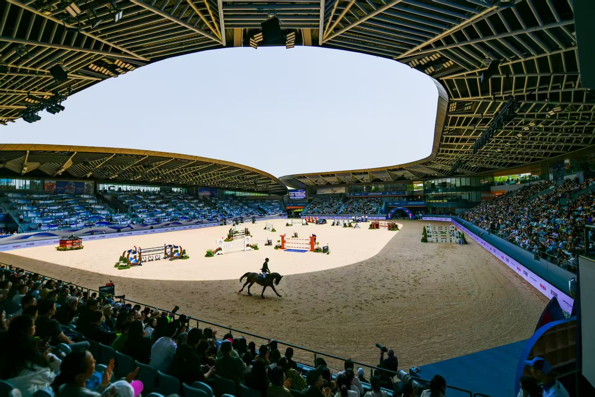 当身着小礼服、佩戴礼帽的优雅观众和身着骑手服装、英姿飒爽的马术爱好者们齐聚一堂,行走在充分蕴含建筑美学的上海久事国际马术中心,一道独特的观赛风景线应运而生。