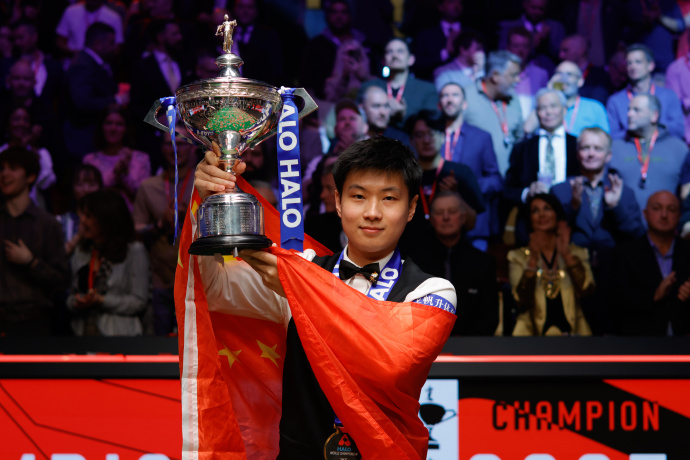 头图为赵心童手捧冠军奖杯。世界斯诺克巡回赛官方图
