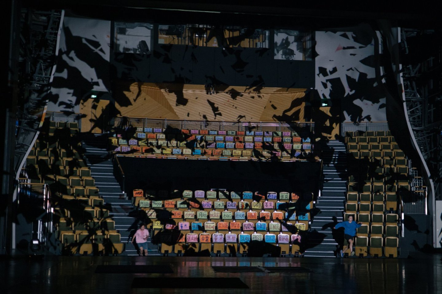 两位编导兼舞者宋欣欣和王姝欢以极富创意的音乐、灯光、多媒体等剧场元素,在舞台上“创造”出了一个反乌托邦的彩色“公园”。驻演版更是全新升级不仅拓展了时长体量,还进一步提升了互动性。演出时,舞台既是观众席,观众席也成为了舞台的一部分,每位观众都会以意想不到的方式参与到演出之中。