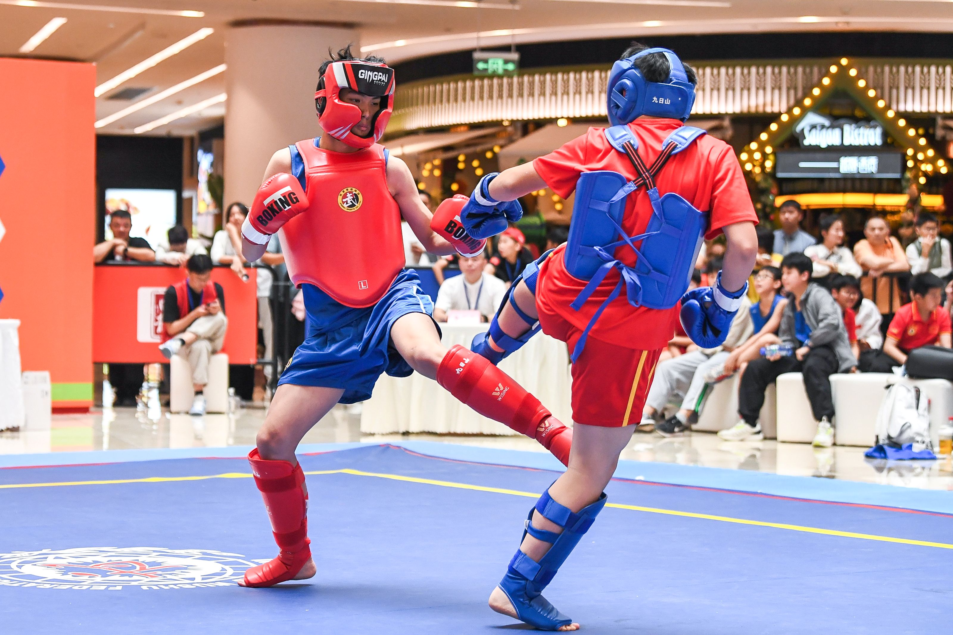 5月24日,2025年上海市城市业余联赛武术散打联赛暨上海市武术散打精英赛在陆家嘴中心广场5楼中庭火热开赛,来自全市19支队伍的300余名选手齐聚一堂,以武会友。