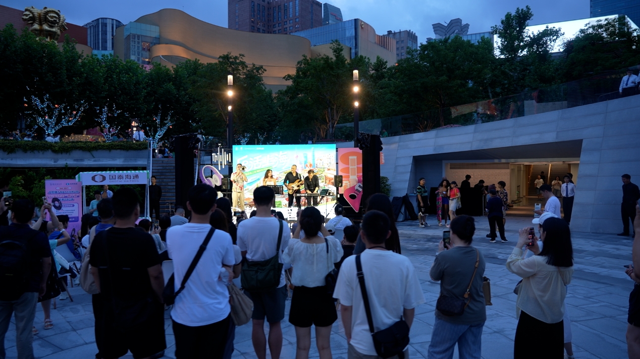 随即表演的BEI BEI HAPPY BAND来自菲律宾海岛,有着顶尖驻唱歌手,是各大国际音乐节的常驻嘉宾。他们风格多变,《爱,很简单》等多首耳熟能详的经典歌曲引发现场大合唱。“以前都是买票去看演出,今晚演出质量和现场氛围完全不输音乐厅!”下班和同事一起路过被吸引的白女士说。